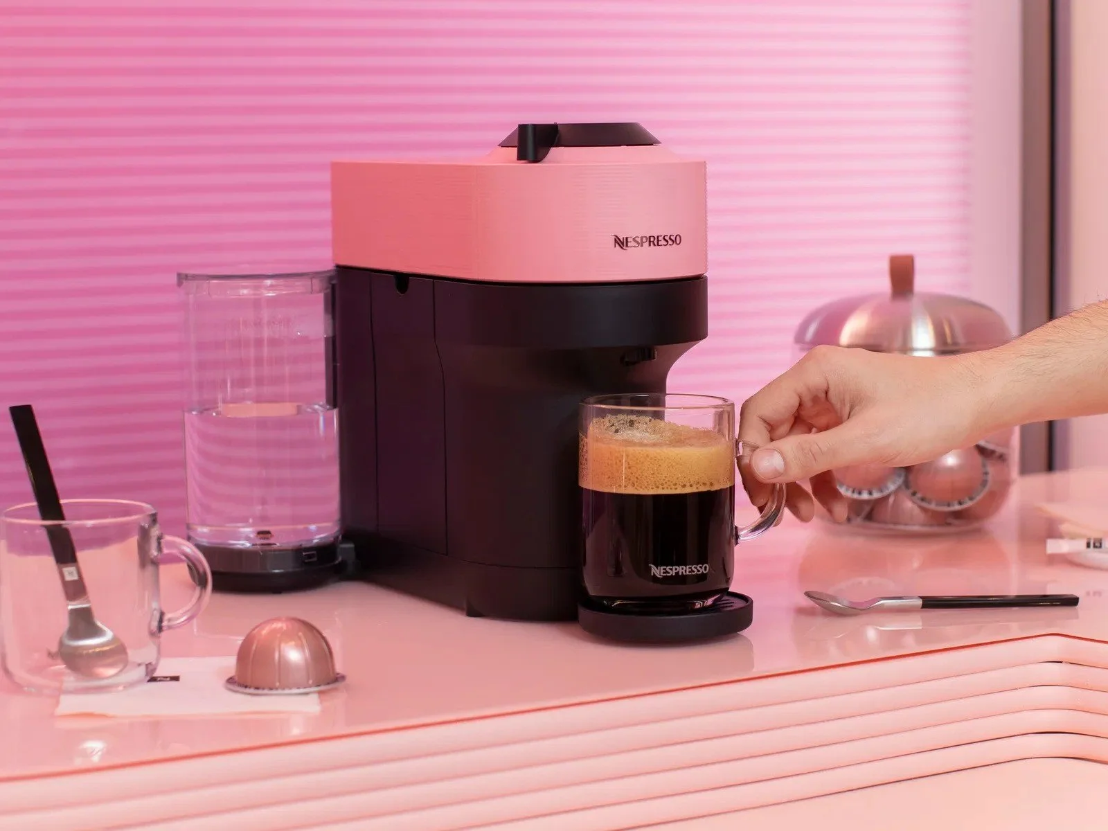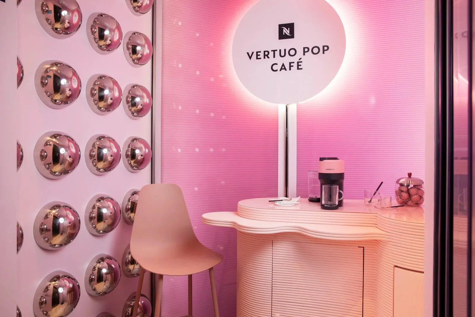 The café’s design was driven by Nespresso’s latest pink Vertuo Pop Machine, known for its organic curves and signature ribbed top. Its sleek aesthetic inspired key design elements, including the flowing café counter, the backlit wall, and the rippled flooring and ceiling. A striking bubble mirror wall, reminiscent of Nespresso coffee pods, created the perfect backdrop for a quick photo—making the morning commute just a little more Instagram-worthy.